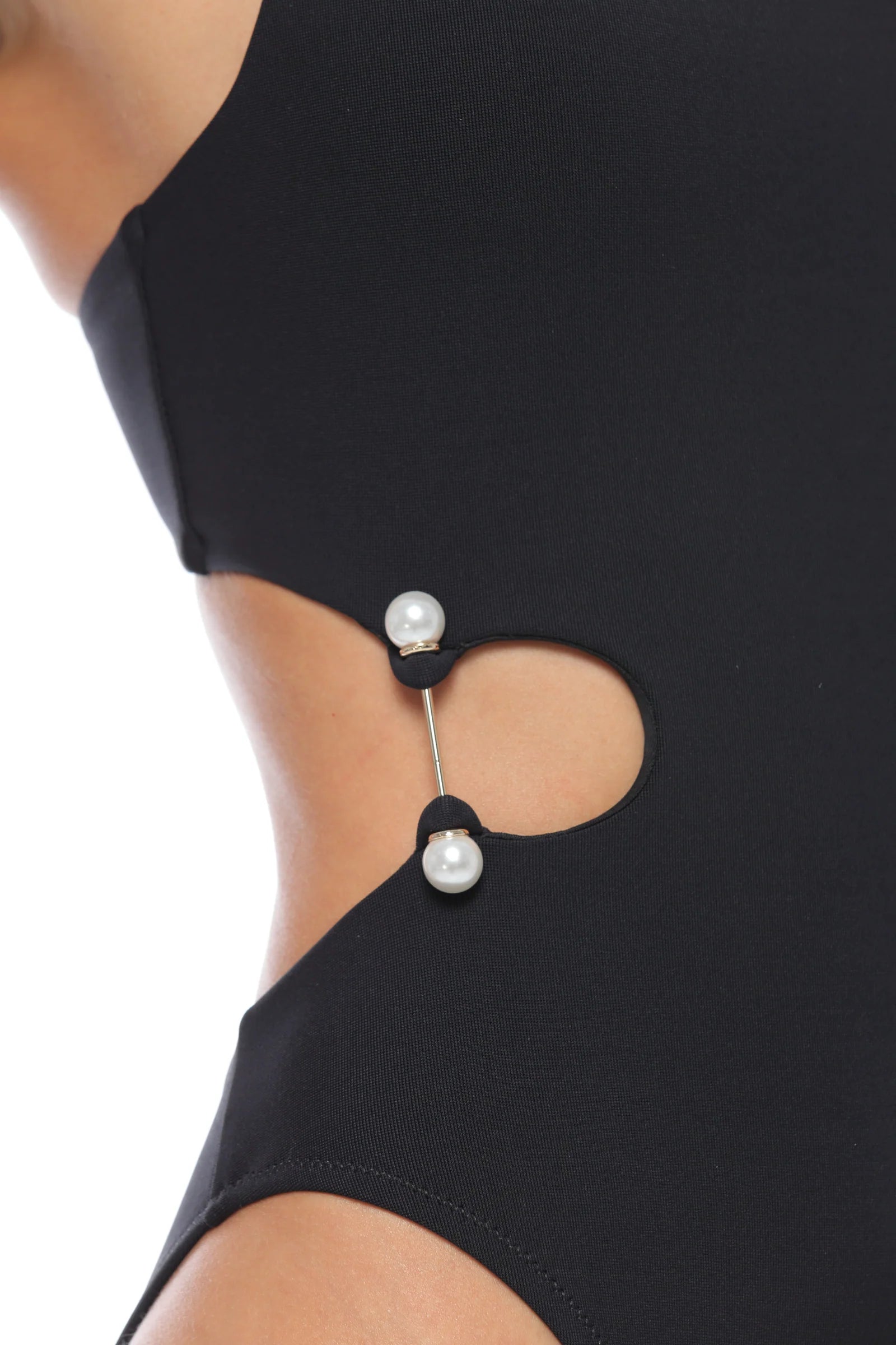 This elegant PAOLA ONE PIECE swimsuit features luxurious cut-out designs and delicate pearl accents, adding a touch of sophistication to your beach look. Made with high-quality materials for comfort and durability, this swimsuit will make you stand out in style.