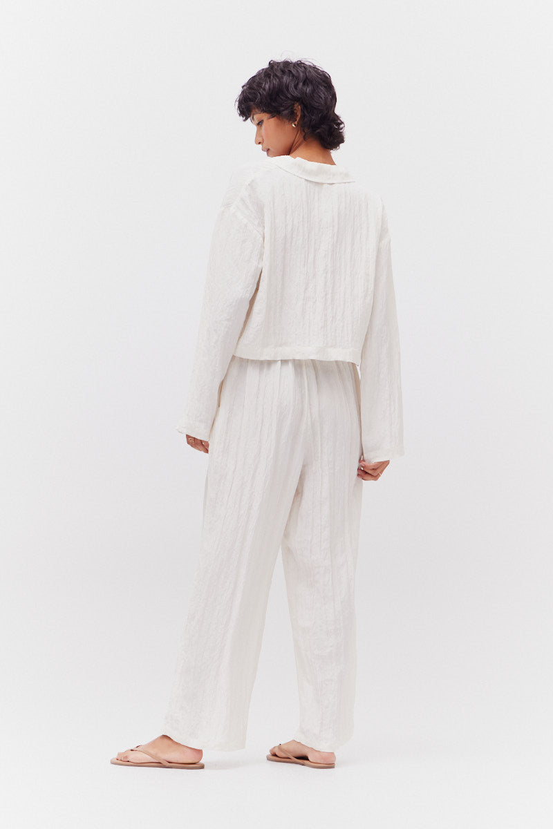 There’s something quietly confident about a tonal set. The Caia is crafted in fluid crinkle fabric with a subtle texture that catches the light just enough. The button-up shirt drapes with ease, while the matching pants elongate the silhouette with a clean, straight-leg cut. It’s understated, intentional, and refined—just how you like to feel.
