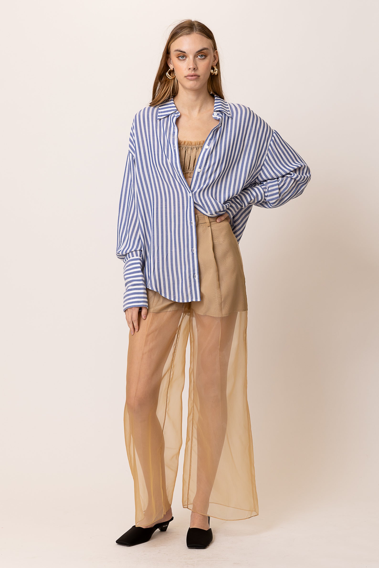 The Elfreda Pants combine crisp structure with fluid movement, pairing tailored high-rise shorts with a sheer full-length overlay. The result is a striking layered silhouette—bold yet breathable, polished yet playful. Designed to stand out in warm weather, they're the kind of piece that turns something simple into something unforgettable.