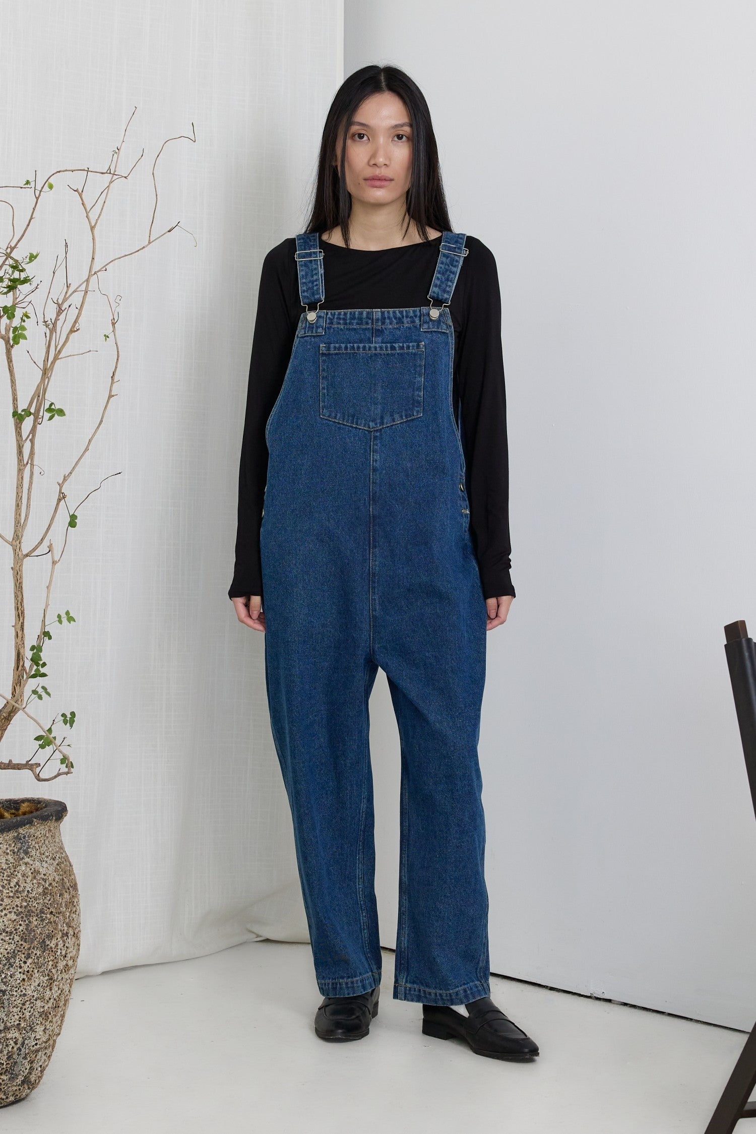 An ankle-length jumpsuit crafted from cotton denim for a structured, streamlined look. Featuring a barrel-leg silhouette, multiple pockets, and adjustable straps with a buckle and slider for a custom fit. The perfect choice for lazy days when you still want to look put-together.
